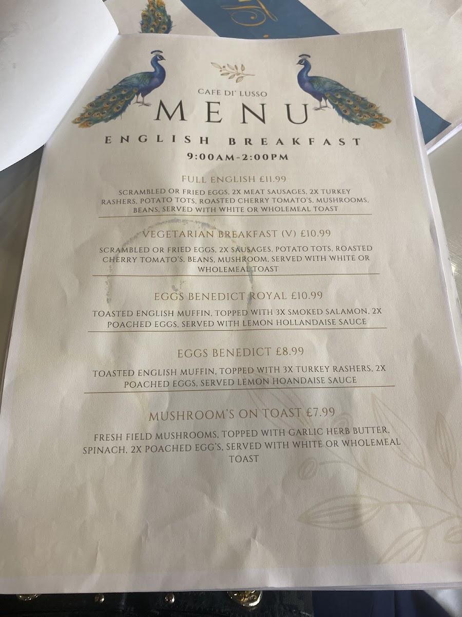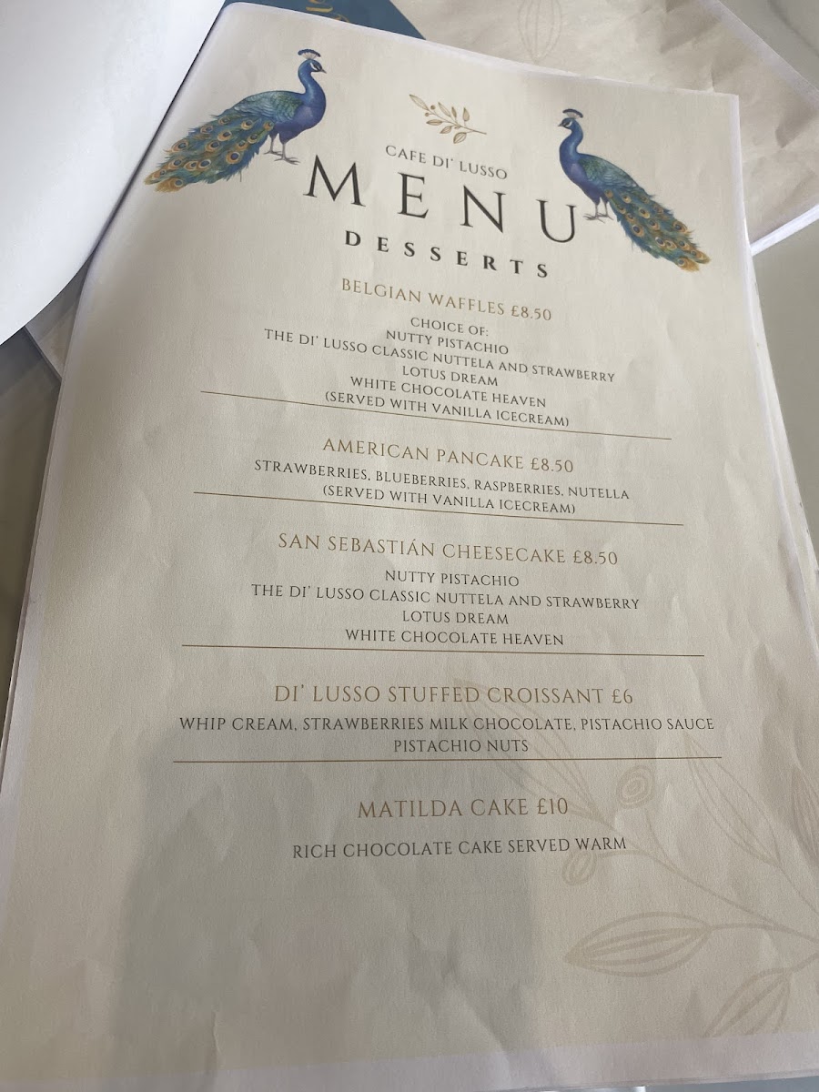 The menu at Café Di'Lusso is thoughtfully organized to cater to a variety of tastes throughout the day, making it suitable for breakfast, brunch, light meals, and casual dining. It features a selection of breakfast extras, desserts, and hot drinks that provide options for both quick orders and relaxed visits.